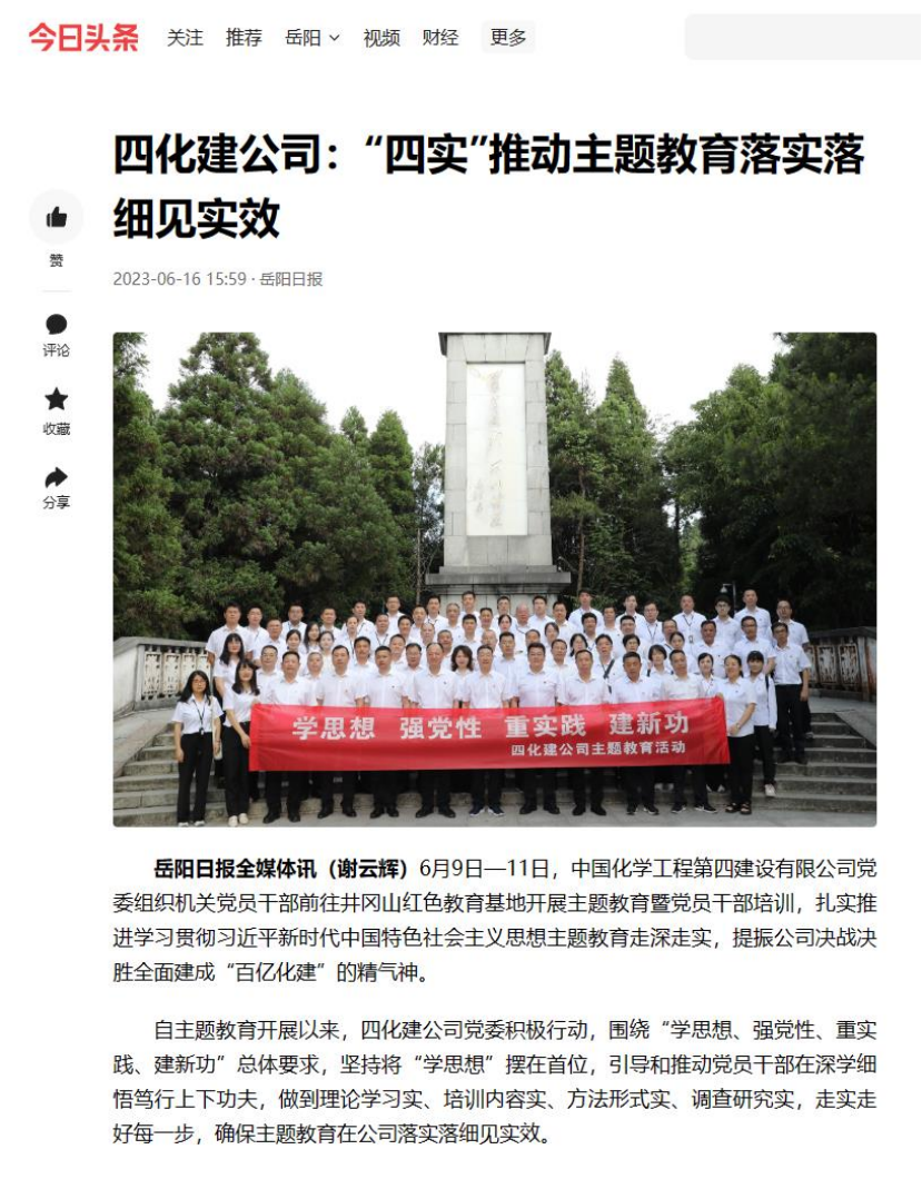 6月19日,《中國化工報(bào)》頭版以《四化建公司:“四實(shí)”確保主題教育見實(shí)效》,對(duì)公司扎實(shí)開展學(xué)習(xí)貫徹習(xí)近平新時(shí)代中國特色社會(huì)主義思想主題教育工作進(jìn)行了全面系統(tǒng)報(bào)道,在全國石化行業(yè)引起廣泛影響。在6月16日,今日頭條也對(duì)公司主題教育工作進(jìn)行了系統(tǒng)報(bào)道?,F(xiàn)全文轉(zhuǎn)發(fā)如下: