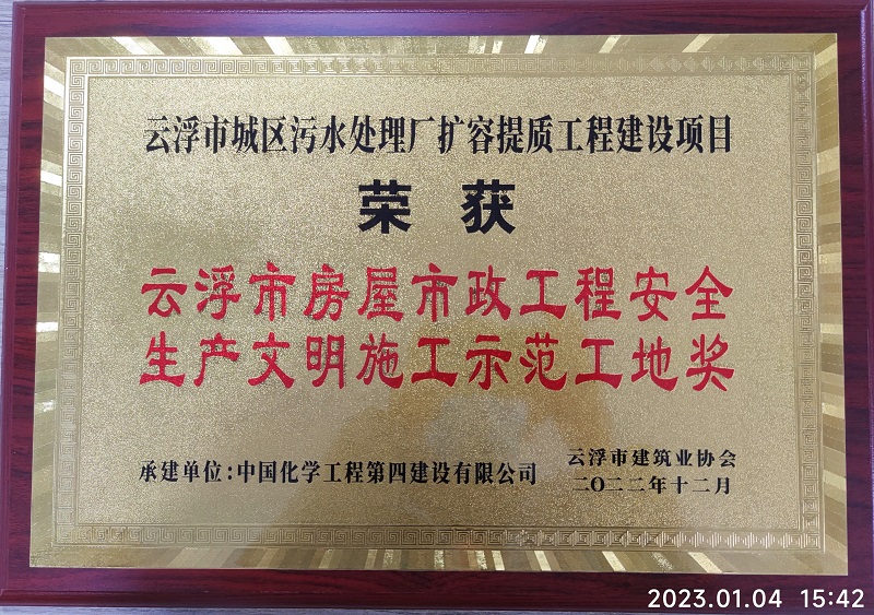 1月4日,由華南公司承建的云浮市城區(qū)污水處理廠擴容提質(zhì)工程項目獲評2022年云浮市房屋市政工程安全生產(chǎn)文明施工示范工地。