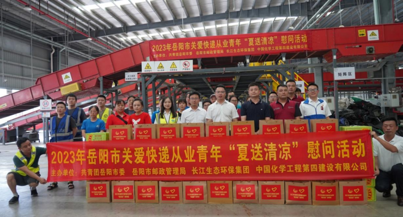 7月18日下午,公司聯(lián)合岳陽團市委、市郵政管理局、長江生態(tài)環(huán)保集團在科德物流園開展2023年關(guān)愛快遞從業(yè)青年“夏送清涼”慰問活動。共青團岳陽市委書記綦小廣、岳陽市郵政管理局局長殷宏亮出席慰問活動。長江生態(tài)環(huán)保集團湖南區(qū)域公司黨群工作部、公司團委、岳陽污水治理項目部相關(guān)負責人員參加慰問活動。