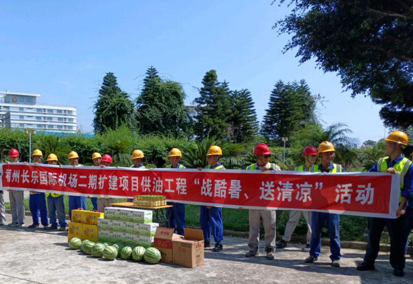 7月23日,公司項目中心福州長樂國際機場供油工程項目部開展“戰(zhàn)酷暑、送清涼”慰問活動。