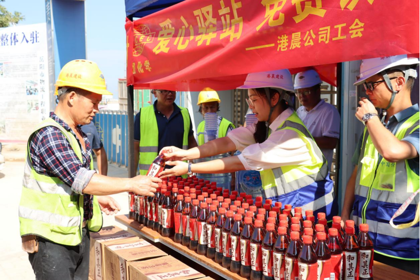 活動中,港晨公司工會為一線參建者們搭建了“愛心驛站”,驛站內(nèi)配備防暑降溫物品、涼茶、礦泉水、冰棒,解決了一線工人在建設(shè)期間的飲水供給、納涼解暑等實際問題,切實打造了一線工人的“加油站”“歇腳地”。