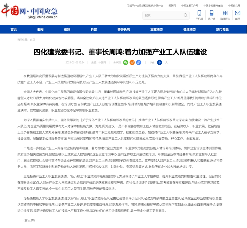 3月6日,中國(guó)網(wǎng)報(bào)道周鴻的建議:著力加強(qiáng)產(chǎn)業(yè)工人隊(duì)伍建設(shè)。