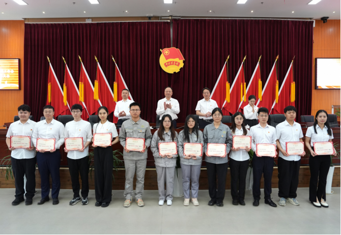 唐文方宣讀《關(guān)于表彰公司共青團(tuán)2024年度“五四”先進(jìn)集體和個(gè)人的決定》。在熱烈的掌聲中,公司領(lǐng)導(dǎo)為獲獎(jiǎng)代表頒發(fā)榮譽(yù)證書和獎(jiǎng)牌,激勵(lì)青年立足崗位再創(chuàng)佳績。