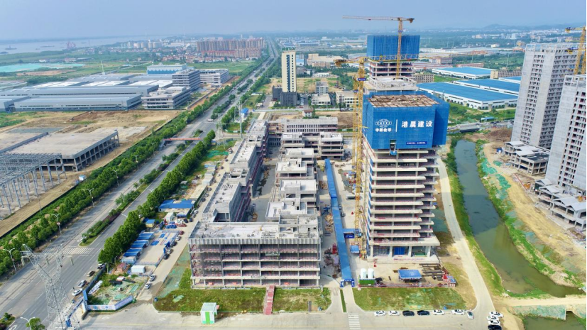 港晨公司岳陽(yáng)自貿(mào)片區(qū)產(chǎn)業(yè)綜合體項(xiàng)目首棟“高大帥”樓宇封頂