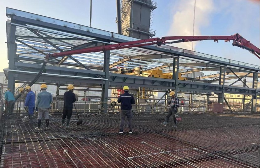近日,隨著屋面板最后一車混凝土的澆筑完成,由華東公司承建的廣東河源杭氧空分項(xiàng)目配電房主體結(jié)構(gòu)順利完成封頂。