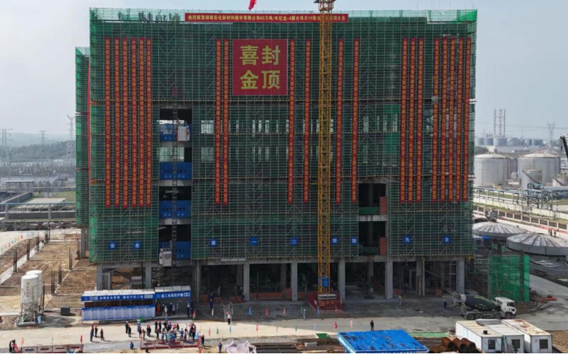 中化勞務公司岳化新材料項目主裝置聚合廠房封頂