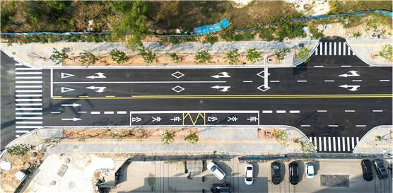 在道路修建過程中,項(xiàng)目團(tuán)隊(duì)充分發(fā)揮專業(yè)優(yōu)勢,嚴(yán)格遵循施工技術(shù)規(guī)范,精心選用優(yōu)質(zhì)的瀝青材料。為了提高攤鋪效率和碾壓密實(shí)度,項(xiàng)目團(tuán)隊(duì)采用了兩臺攤鋪機(jī)聯(lián)鋪等科學(xué)有效的施工措施,嚴(yán)格控制瀝青混合料在施工過程中的溫度損失,有效提高瀝青混合料的熱穩(wěn)定性和耐磨性。此外,項(xiàng)目團(tuán)隊(duì)還加強(qiáng)了現(xiàn)場觀測,使瀝青面層的平整度和穩(wěn)定性達(dá)到最佳狀態(tài),確保了項(xiàng)目的順利竣工。