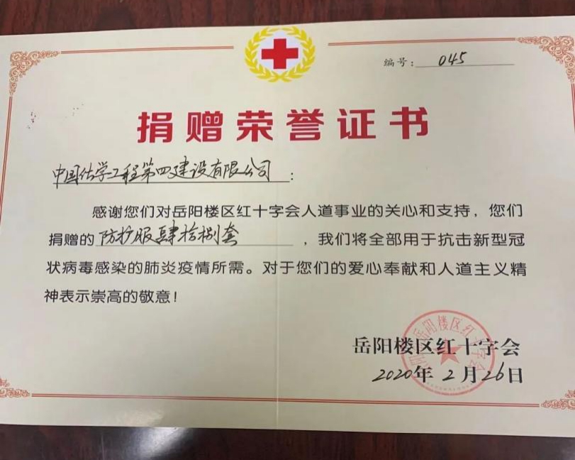 公司向岳陽(yáng)樓區(qū)紅十字會(huì)捐贈(zèng)防護(hù)服